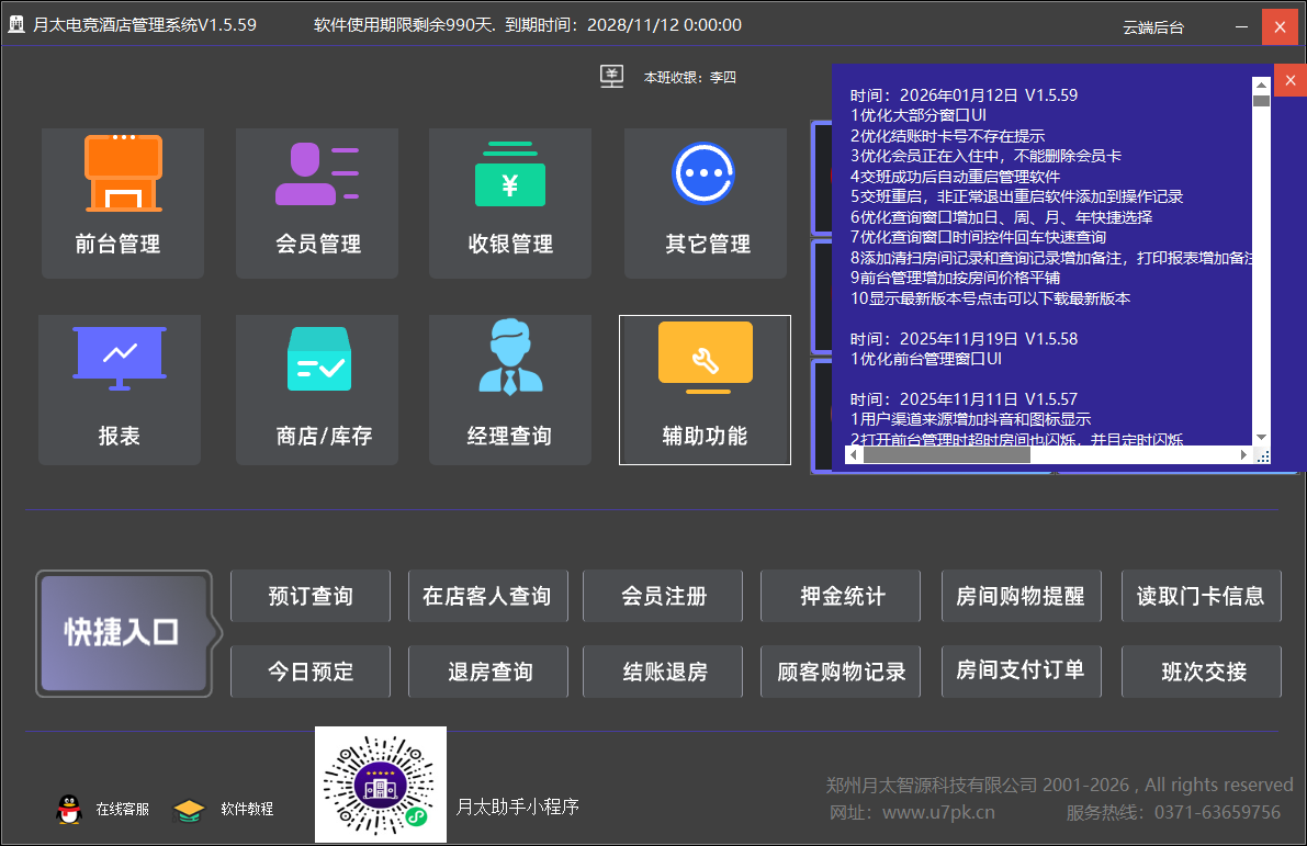 软件更新公告,可以在主界面点击“辅助工具”,再点击“更新公告”进行查看