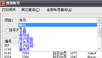 软件提供有打印账号和信息和账单的功能,具体的操作方法如下: 如打印账号信息为例:用户可以点数据查询---账号查询,根据相关的查询条件找到相关的记录: