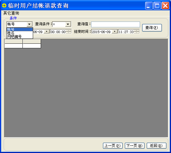 在项目选择网吧编号或者网吧名称时,可以单独查询某个网吧的开的账号