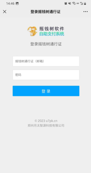 在服务端软件上点击 自助支付即可看到摇钱树二维码,扫码关注摇钱树公众号